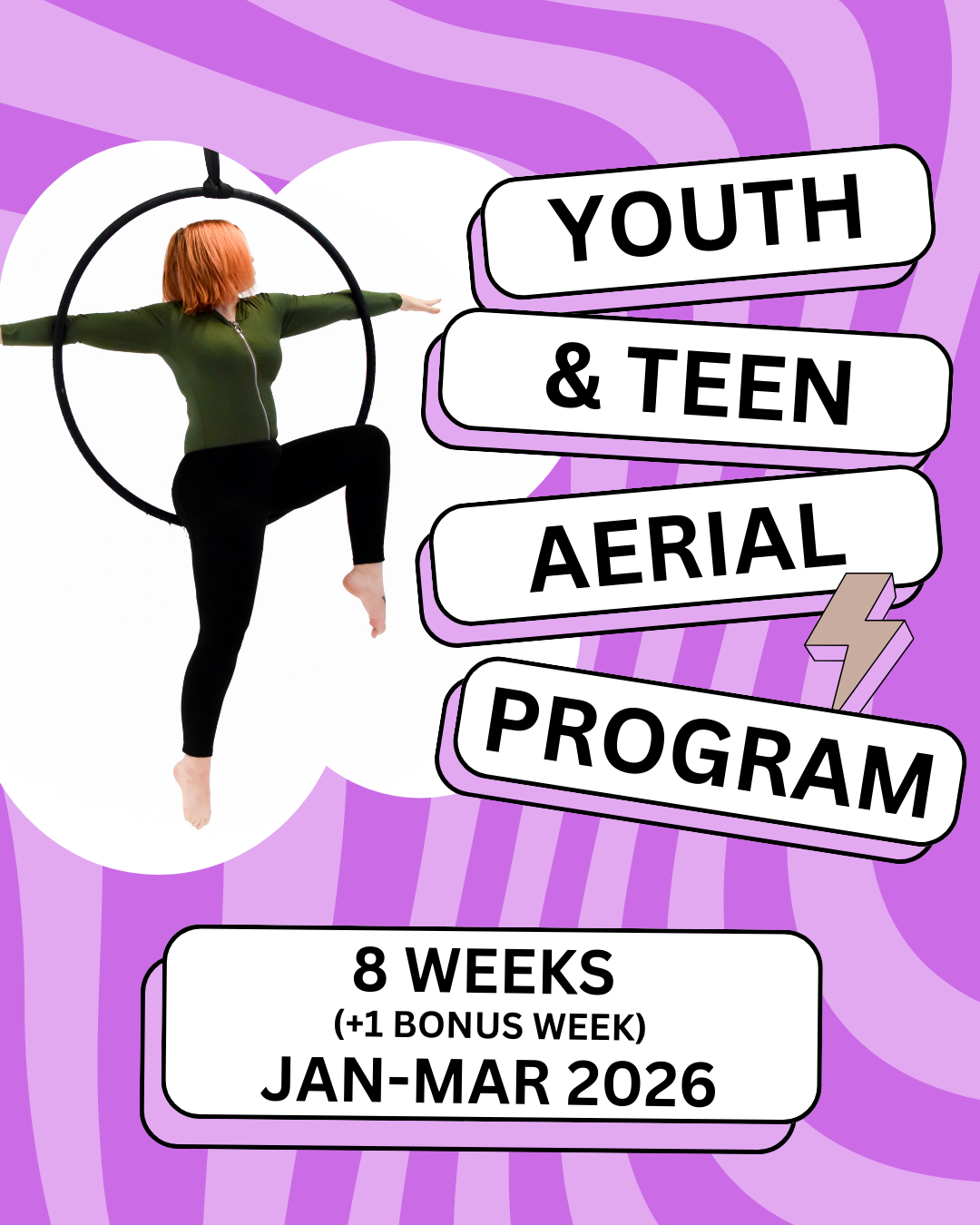 Is your child ready to get in the air? Join our aerial hoop Youth & Teen Classes!