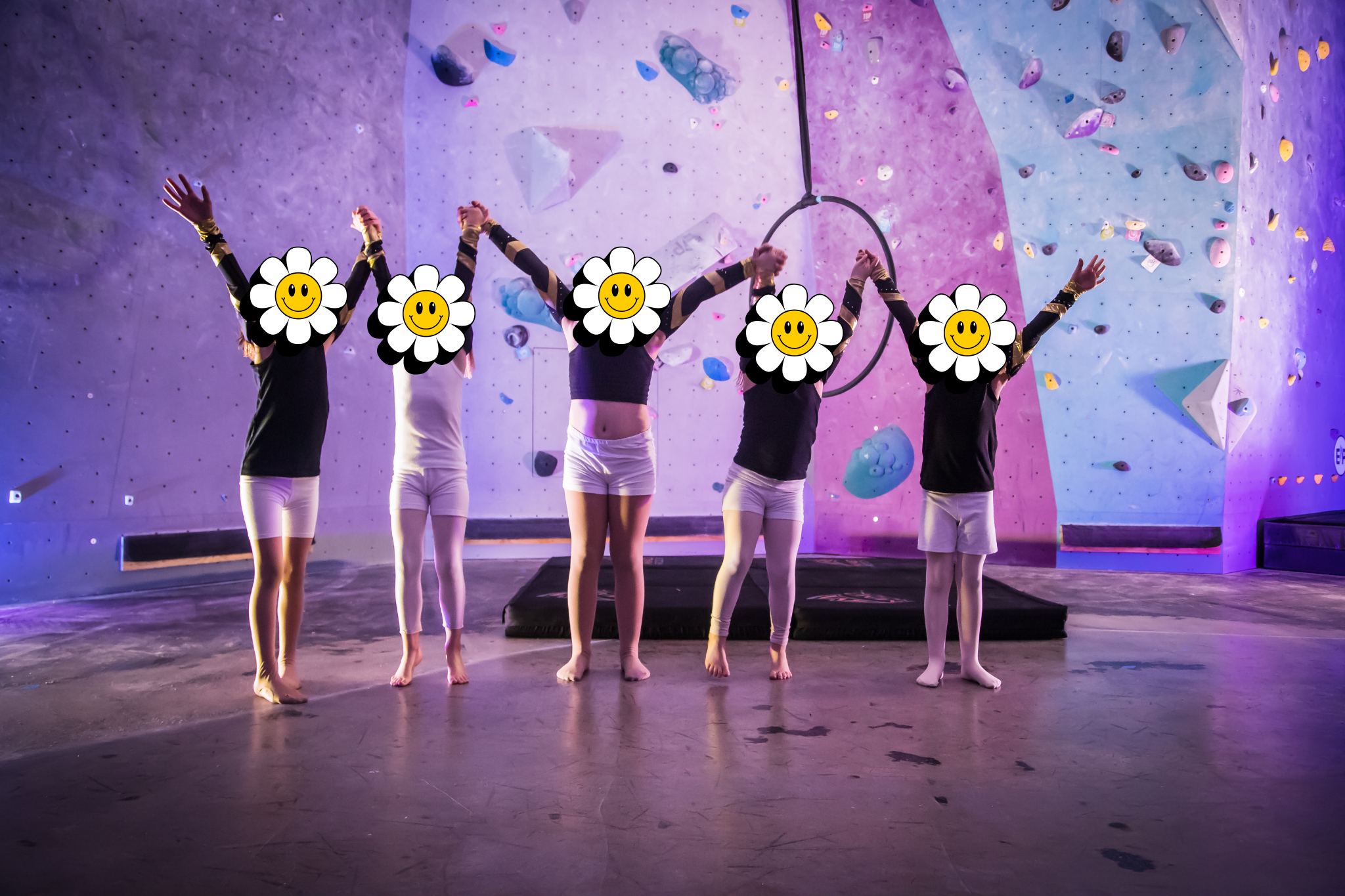 Classes are divided by age and level. Any students enrolling for a strictly level 2 class should have a minimum of 4 months of aerial experience. They should be confident mounting to the top bar of the hoop and holding an inverted straddle beneath the hoop.